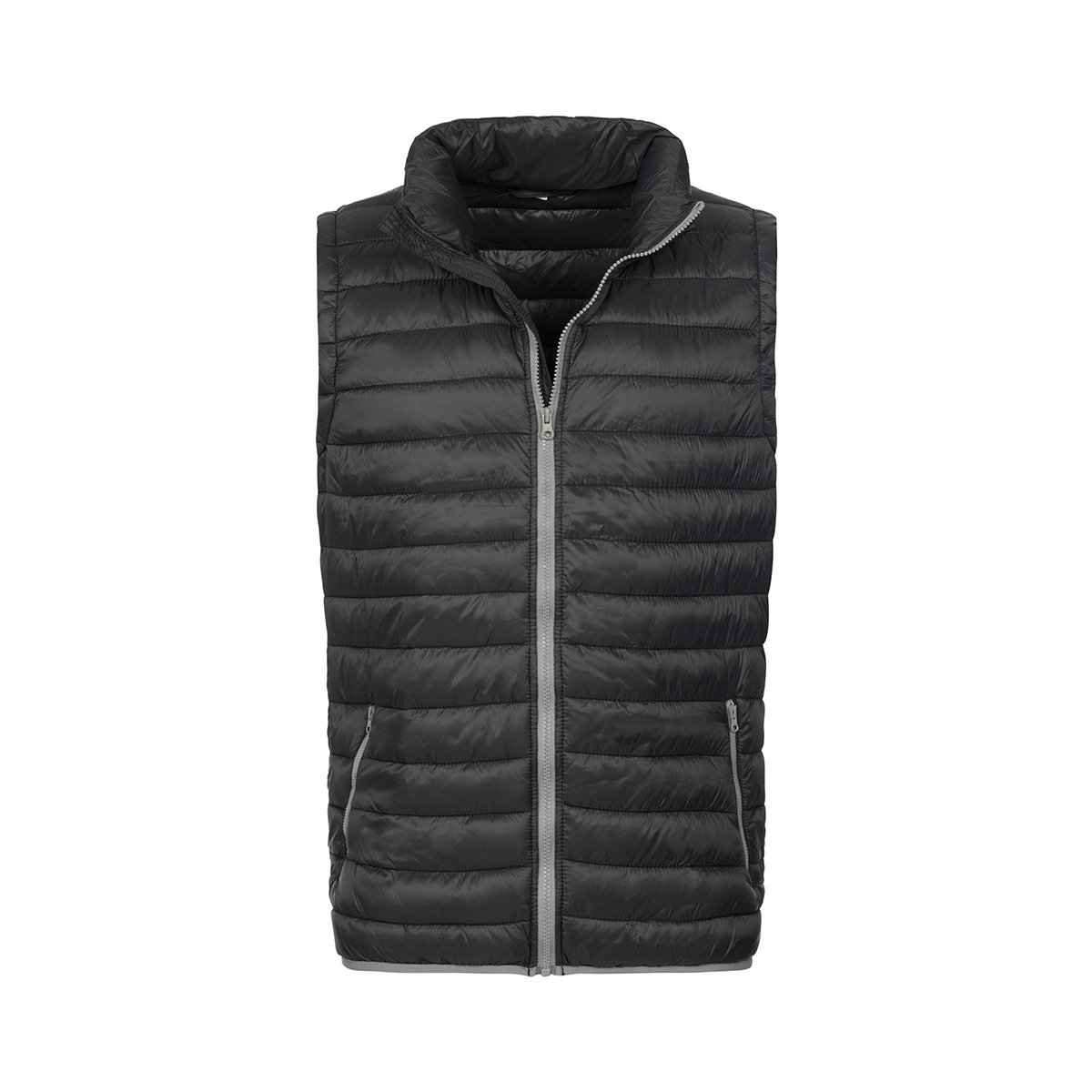 Контрастная окантовка из полиэстеровой ленты по кромке, оторочка проймы из того же материала, что и куртка, наполнитель из полиэстера, боковые вставки и боковые швы, превосходная теплоизоляция при незначительном Плотностье, 2 боковых кармана с контрастной застежкой-молнией, вешалки-петельки, водоотталкивающий воротник-стойка с застежкой-молнией и убираемый капюшон с кулиской, контрастная застежка-молния, этикетка с указаниями по уходу в боковом шве, маленькая бирка с размером со стороны спины.