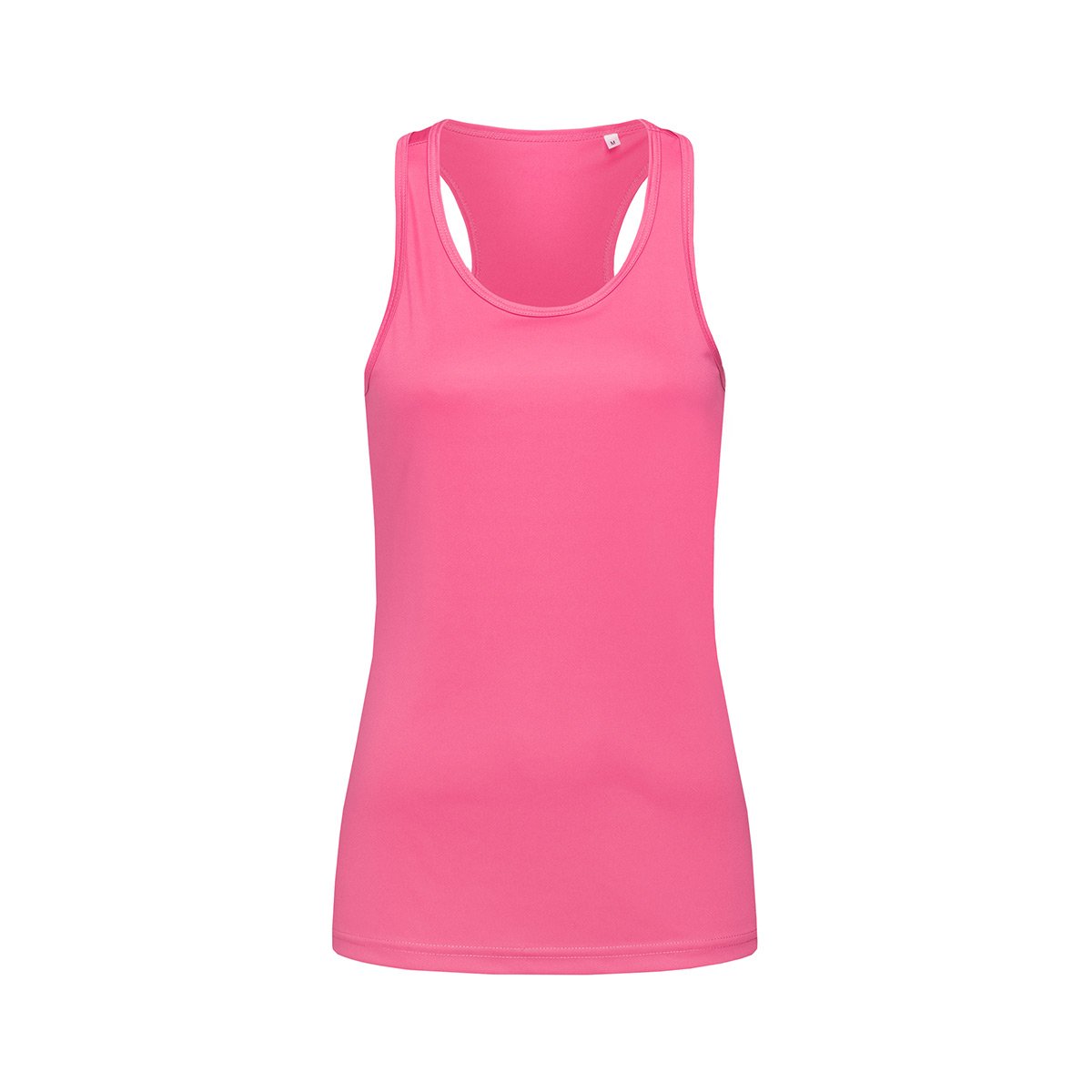 Майка-борцовка, м`яка і злегка блискуча тканина, бокові шви, виріз під горло і пройми з каймою, невеликий світловідбиваючий принт ACTIVE-DRY ° на спині, етикетка з вказівками щодо догляду в боковому шві, маленька етикетка з розміром з боку спини.