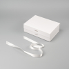 Коробка складна з твердого, переплетеного картону, вкрита дизайнерським папером, атласна лента ширина 4,0 см. Кришка на магнітах.