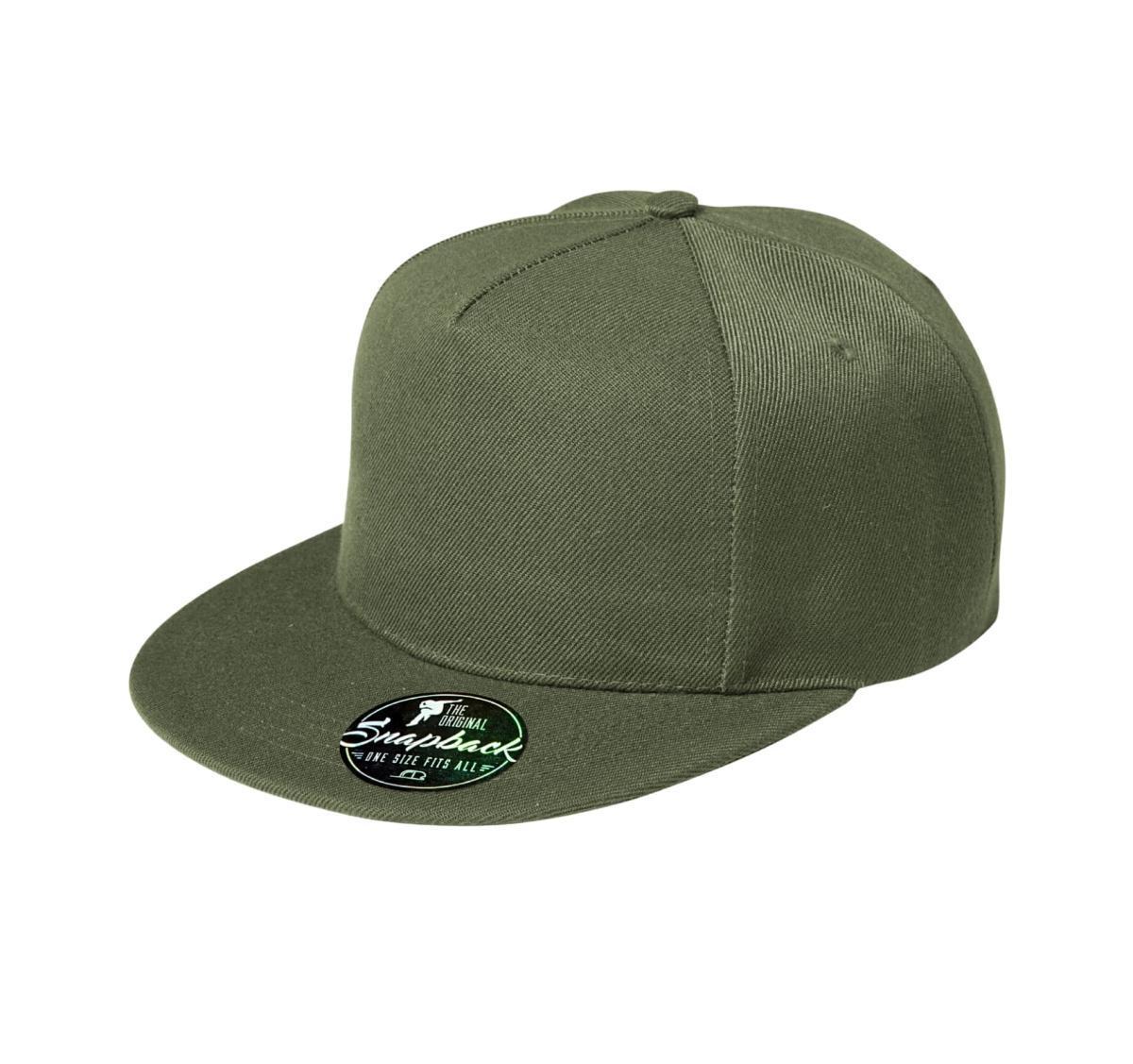 Кепка Rap 100% бавовна, 340 г/м2, з 5-ти клинами, укріплений передній клинок, прострочений плоский козирок, обшиті вентиляційні отвори, стрічка для захисту від поту, розмір регулюється пластмасовими кнопками.