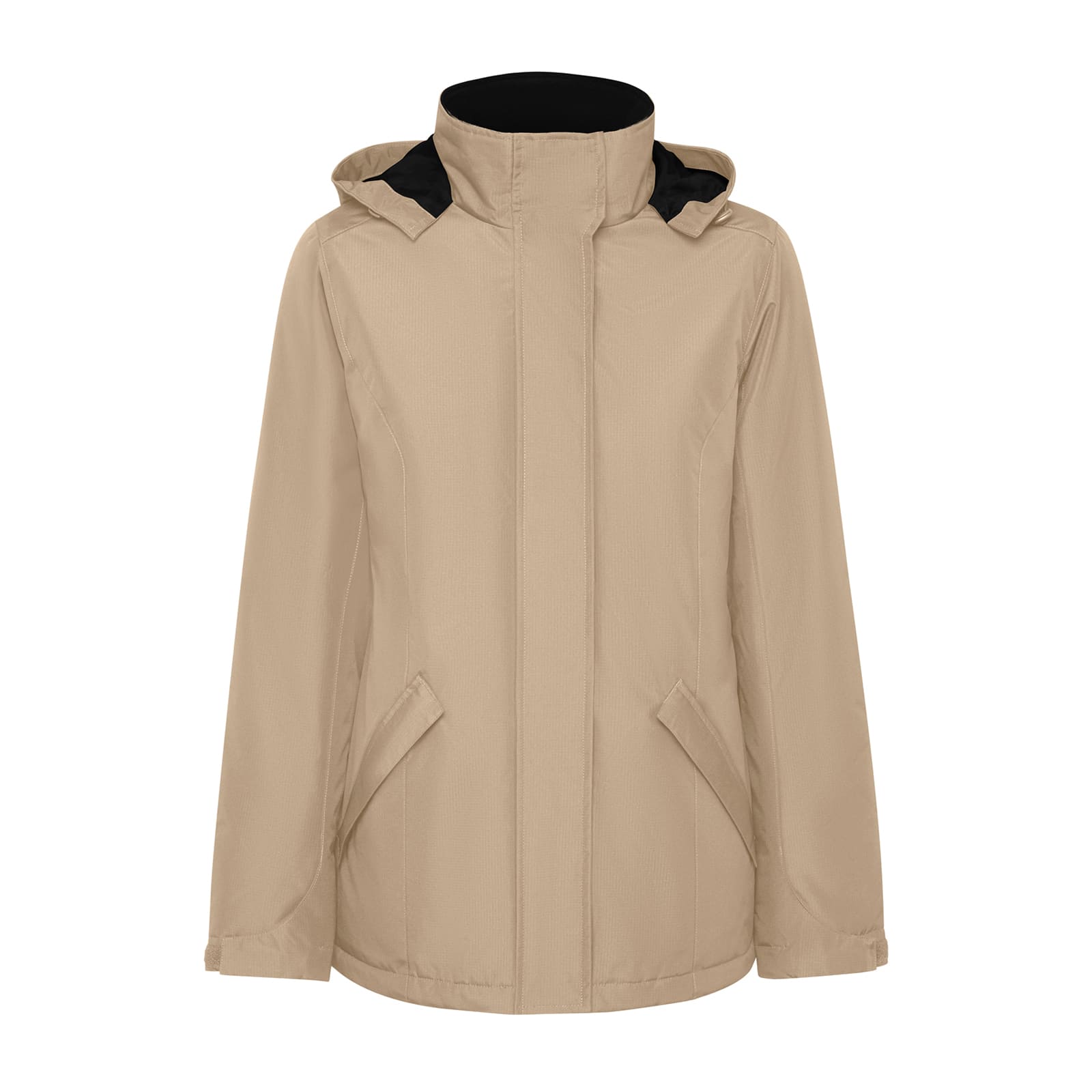 Пухова куртка-парка з від'єднуваним капюшоном та еластичними регуляторами. Водонепроникний матеріал. Спереду блискавка, що прикрита широкою планкою з того ж матеріалу. Манжети з регулятором на липучці. Бічні кишені з відповідними блискавками, прикриті планкою з тканини. Внутрішня кишеня ліворуч. Внутрішній доступ для персоналізації.