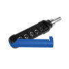 Викрутка виготовлена з АБС пластику та високоякісної сталі. В комплект викрутки входить магнітний тримач, 9 біт (один адаптор - ADP, два шестигранник - Т15, Т20, три плоскі - 3 мм., 5 мм.,6 мм., три хрестові - PH0, PH1, PH2) а також 5 головок торцевих ключів (6 мм., 7 мм., 8 мм., 9 мм, 10 мм.) Упакована в індивідуальну чорну подарункову коробку та поліетиленовий пакет. Розмір в складеному стані 16,5 см.